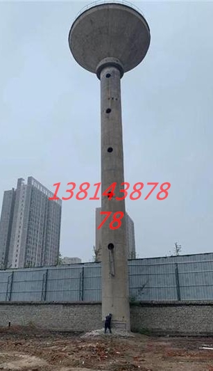 顧名思義什么叫做傘形水塔?其實就是我們所見到的頂部類似于傘狀的水塔,又叫蘑菇形水塔,它的結構為鋼筋混凝土澆筑。在進行水塔拆除的方式上大多采用人工簡體拆除(搭建環形操作平臺)、人工定向整體放倒拆除二種拆除方式來進行,無論采取哪種方式進行水塔拆除施工必須使用空壓機帶動風鎬來實施筒體的混凝土拆除。只不過采取人工簡體拆除時可以運用開槽割鋼筋拉塊的方式或者直接破碎墻體混凝土然后割除鋼筋的方法,但是整體放倒拆除就必須采用底部破碎砼體割鋼筋開洞的方式。簡體拆除水塔施工時難度主要集中在頂部箱體上也就是我們看到的類似于蘑菇狀和傘狀的水箱,因為它的結構比較復雜而且高度也比較高相對的操作空間比較有限因此在水塔拆除中該水箱占據的工作量也有總體的一半左右。這種水塔的高度大多在40米以內,容積正常不超過300立方,水箱的高度一般在5米左右,筒體的直徑在5米之內。